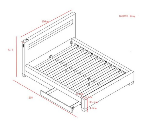 Asteroid Leather King Size Bed 5ft with LED Lights + Bluetooth Speaker - Black